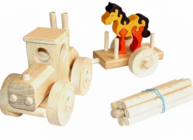 Dřevěné hračky – DŘEVĚNÝ TRAKTOR, KLÁDY, PUZZLE KŮŇ – hračky pro kluky – dřevěné traktory – český výrobek – CEEDA CAVITY