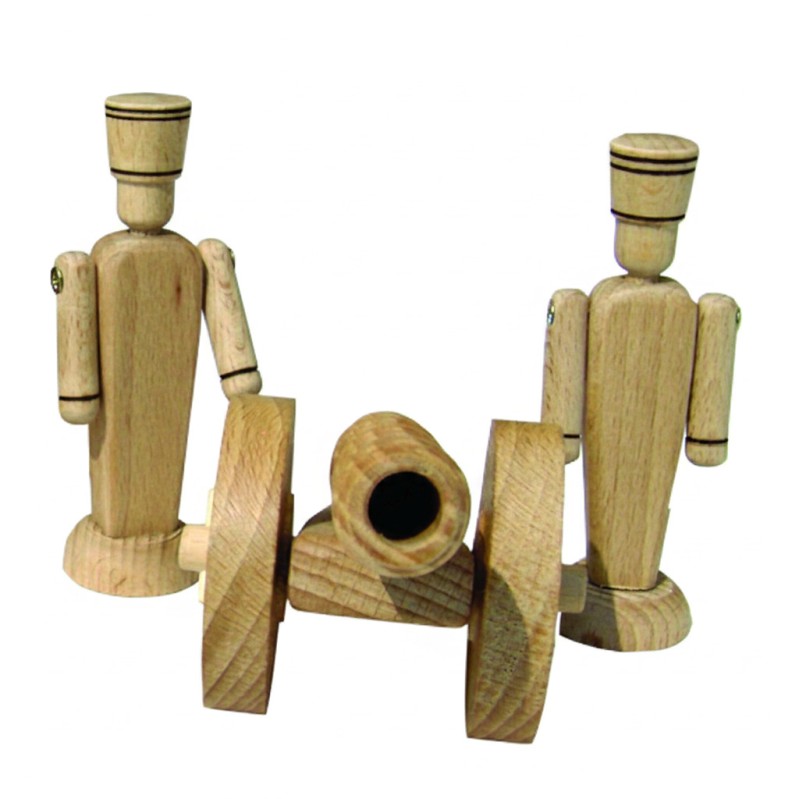 Dřevěné hračky – SADA, DŘEVĚNÉ DĚLO A VOJÁČCI, 2KS – dřevěná děla – historické hračky – české výrobky – CEEDA CAVITY