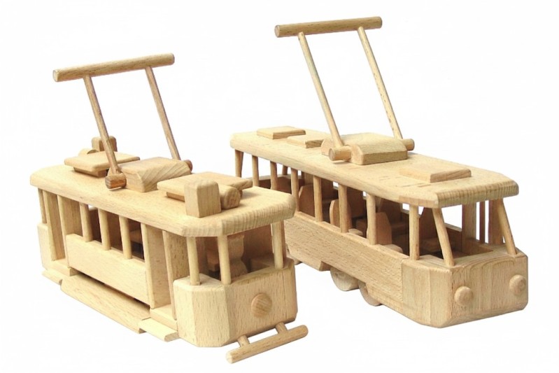 Dřevěné hračky – SADA TRAMVAJE, 2KS, MODERNÍ, HISTORICKÁ – hračky pro kluky – dopravní prostředky – český výrobek – CEEDA CAVITY