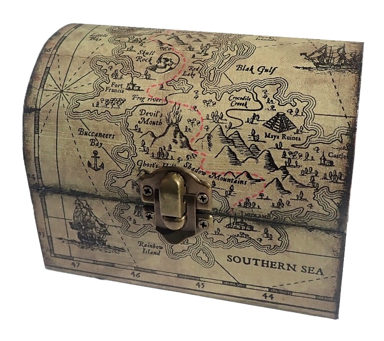 Dřevěné krabičky, truhličky pro kluky – DŘEVĚNÁ TRUHLIČKA NA POKLADY, PIRÁTSKÁ MAPA – kouzelné doplňky do dětského pokojíčku – kvalitní české výrobky