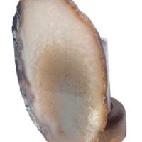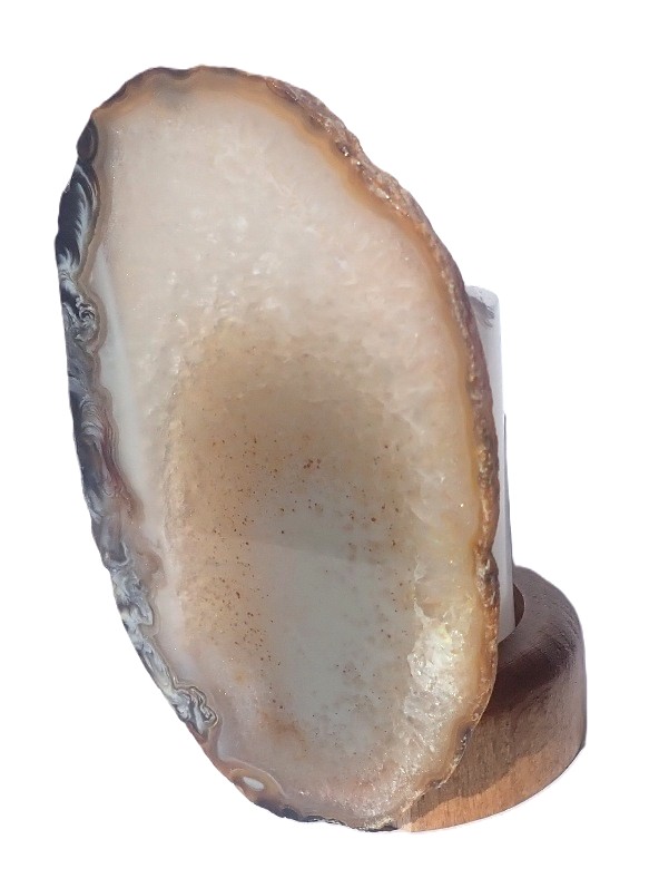 - Achát, známý pro své ochranné a harmonizační vlastnosti, se při zapálení svíčky rozzáří a nechá vyniknout jemnou hru světla a barevných tónů