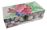 - Povrch je zdoben originální ubrouskovou technikou (decoupage), která jí dodává jedinečný vzhled – žádná není úplně stejná