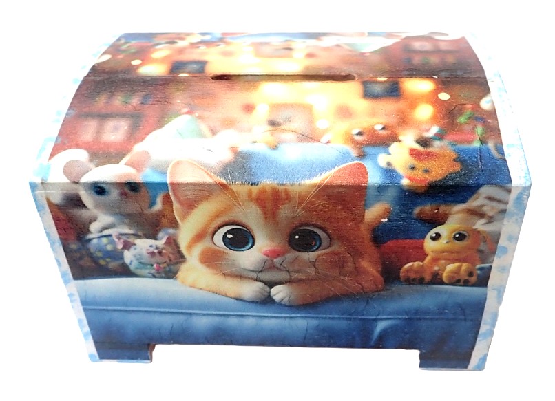 Dřevěné pokladničky – VELKÁ DŘEVĚNÁ POKLADNIČKA, KOŤÁTKA – pokladničky po děti – dárky pro děti – české výrobky