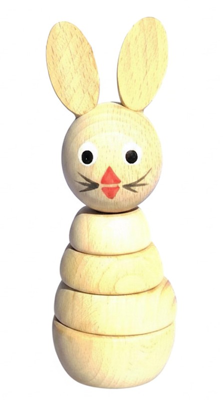 Holzspielzeug – KREATIVE STAPELSPIEL, PYRAMIDE HASE, NATUR – didaktische motorische Spielzeug – Tschechisches Produkt