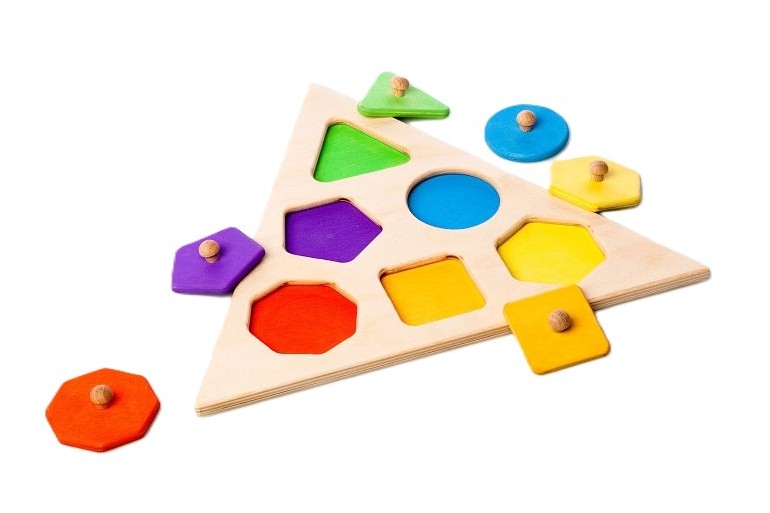 Motorické hračky – Dřevěná vkládací hračka – Dřevěná skládačka, vkládačka – TROJÚHELNÍK tvary – český výrobek