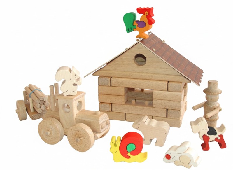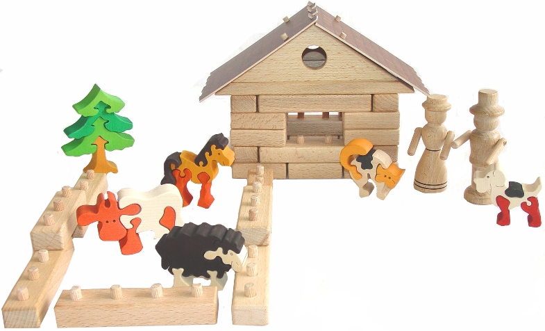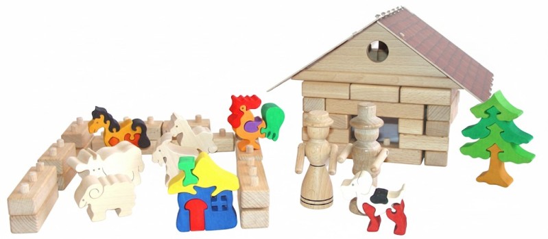 Wooden toys – WOODEN BUILDING KIT, HOUSE WITH ANIMALS I. – educational wooden toys – wooden toys – czech produc